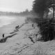 “Rollers broke on the beach and travelled alongshore from N to S with great velocity. Great waves commenced to break from 400 to 1000 yards off-shore. Heavy bay bar apparently formed off-shore… wide flattish beach formed and sand dunes cut back…No wind. Waves at maximum height…Large stones torn out of retaining walls tossed like corks along the beach from 6-10 feet above ordinary high-water mark”. He also noted that it were larger waves at 10–15-minute frequency “which accomplished the whole of the destructive work” . In looking forward to rebuilding of foredunes involving sand binding plants like Spinifex, he commented “It would take a period of 20 to 30 years to obliterate the trace of the storm unless indeed, in the meantime, an onshore storm still greater than that of 1912 should visit the beach”. Incidentally it was during the 1912 storm that the sandstone block known as the “Mermaid Rock” was thrown onto the platform below the cliffs at Ben Buckler, Bondi.